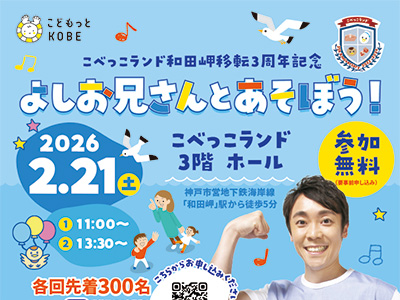 【2月21日(土)開催】こっべこランド和田岬移転3周年記念 よしお兄さんとあそぼう!