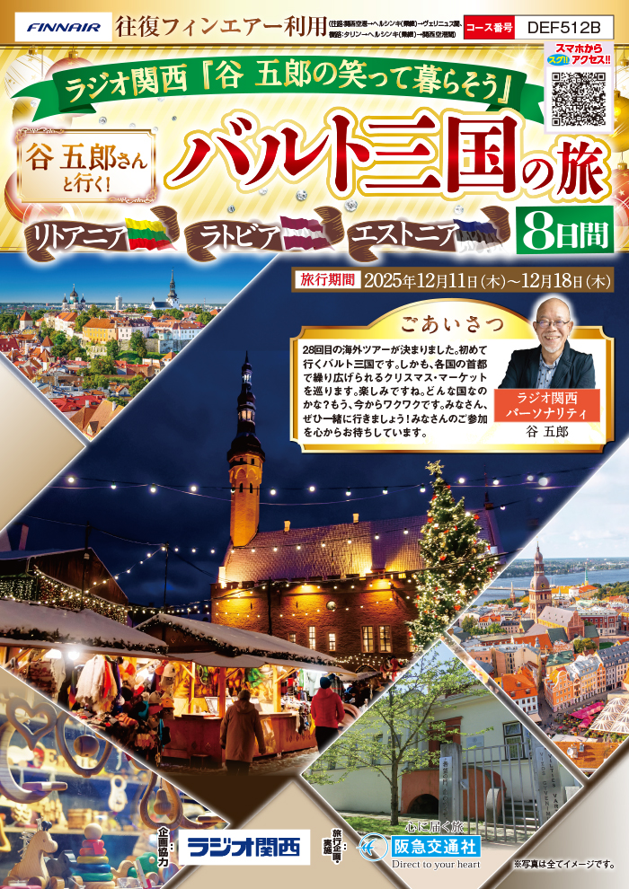 28回目の海外ツアーが決まりました。初めて行くバルト三国です。しかも、各国の首都で繰り広げられるクリスマス・マーケットを巡ります。楽しみですね。どんな国なのかな?もう、今からワクワクです。みなさん、ぜひ一緒に行きましょう!みなさんのご参加を心からお待ちしています。