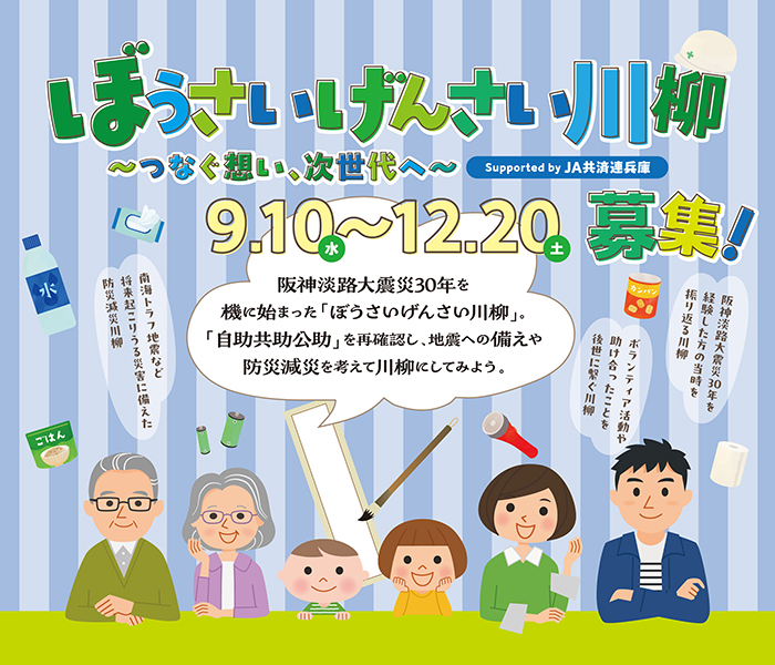 昨年度の神戸新聞紙面そして今年も、あなたの想いを川柳で届ける「ぼうさいげんさい川柳」を開催します。