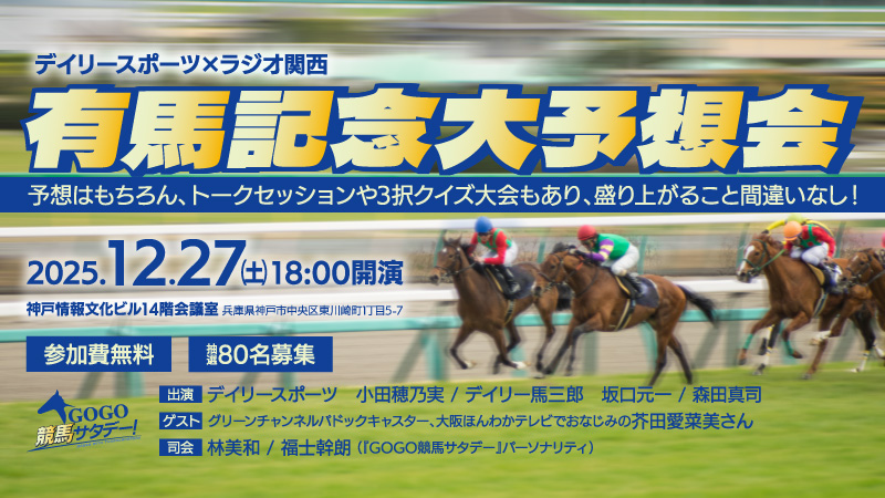 デイリースポーツとラジオ関西の共同企画「有馬記念大予想会」イベントを今年も開催します。