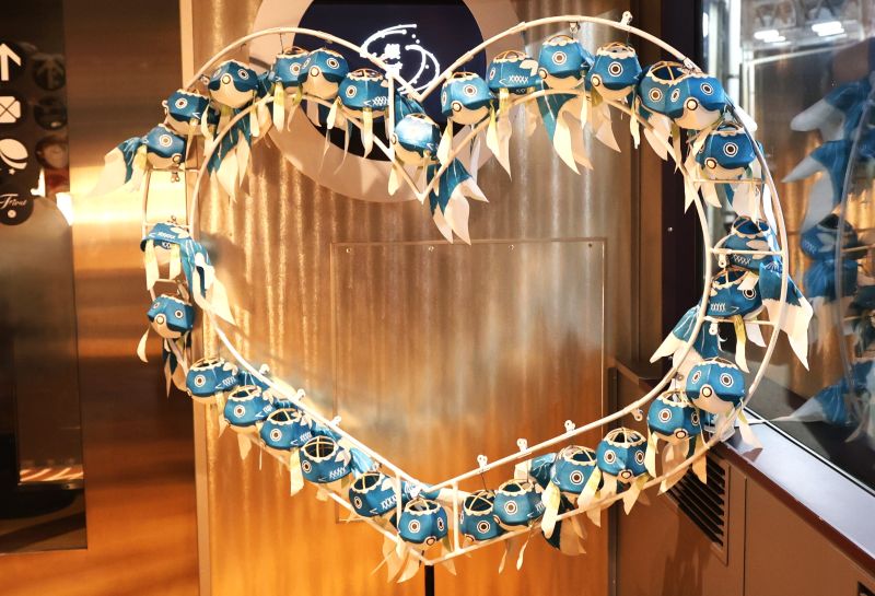 柳井市の伝統工芸品「柳井金魚ちょうちん」。こんなハート型のフォトフレームも!