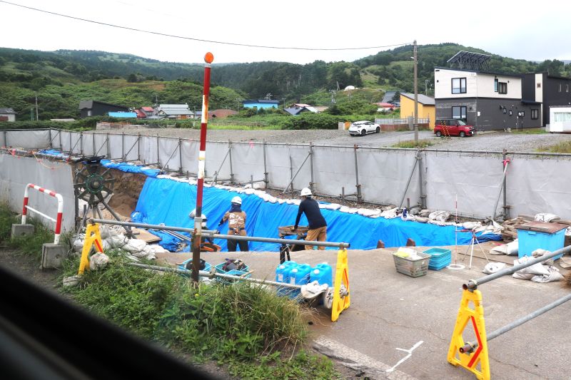 先頭車両からの光景。雨が降り続いていました