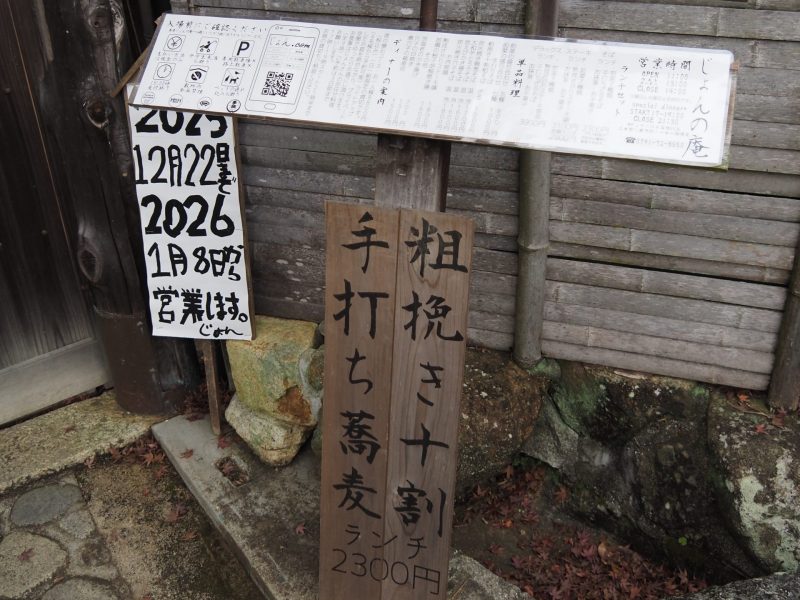 ここはアメリカ人のじょんさんが経営する「じょんの庵」という日本料理店。美味しい蕎麦やこだわりの小料理が味わえるお店だそう。新年は1月8日からの営業と書かれていました
