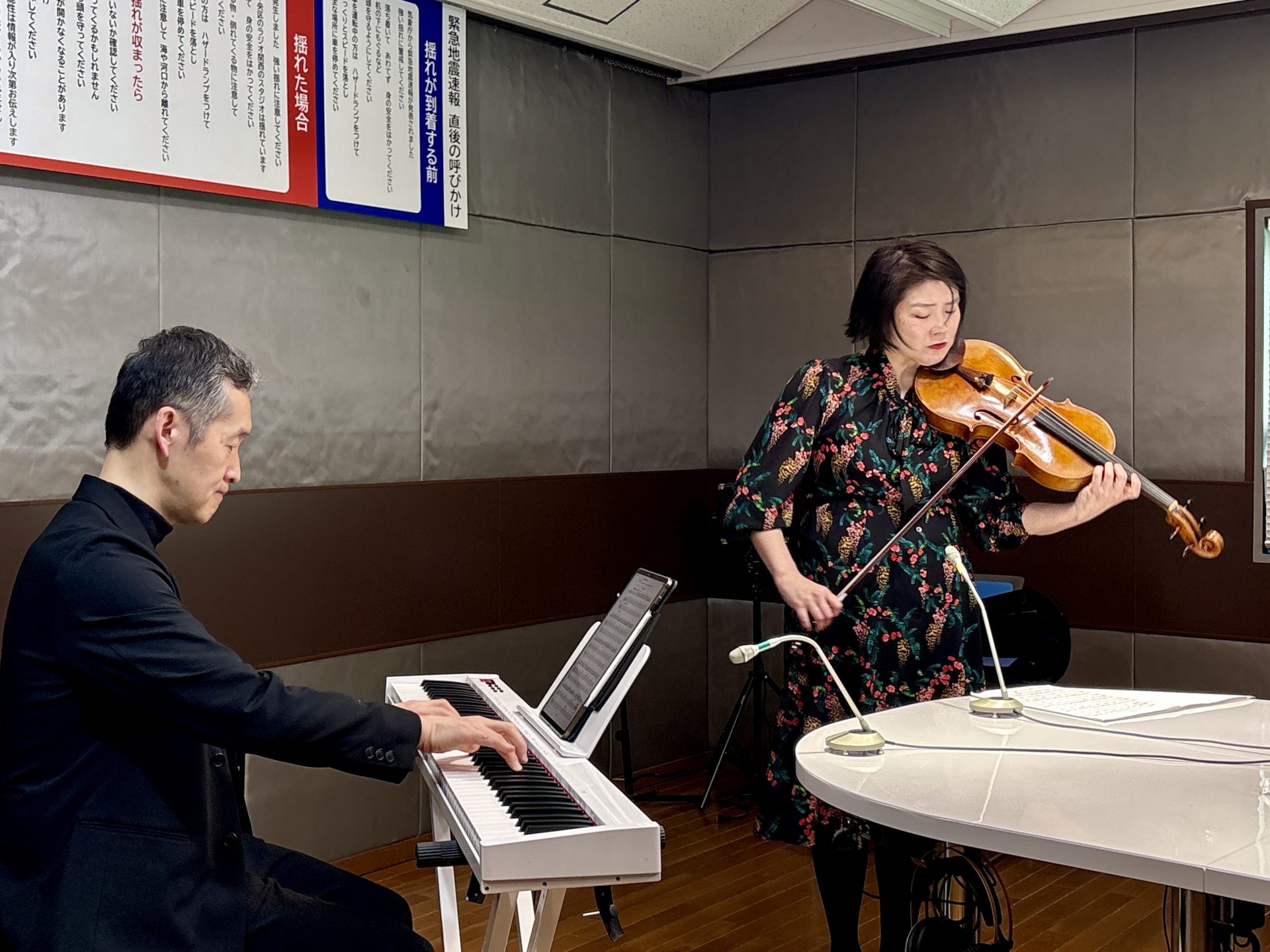9時台はゲスト。ヴィオラ奏者の神原玲奈さんとピアニストの藤井快哉さんにお越しいただきました。