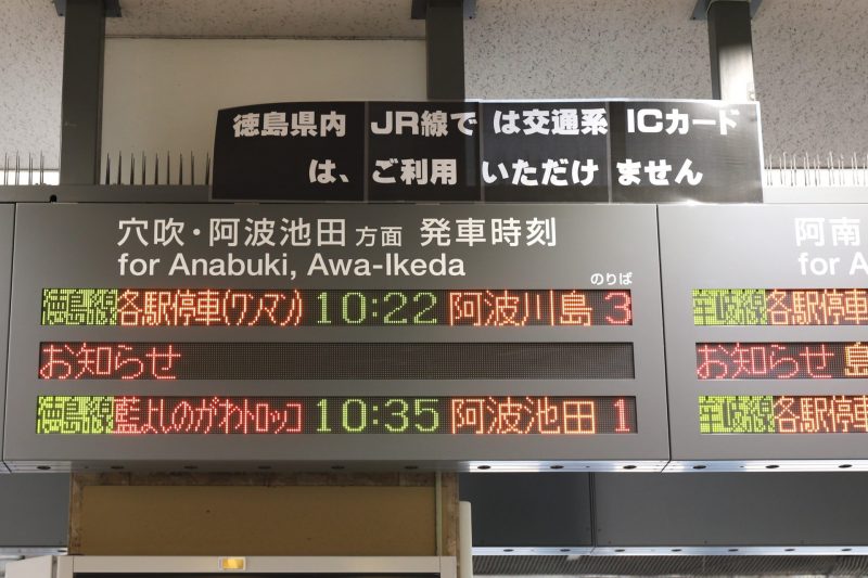 徳島中心駅の徳島駅は未だに有人改札で、県内のJR線で交通系ICカードが使えません。徳島県は全国で唯一電車の走っていない県でもあるのです