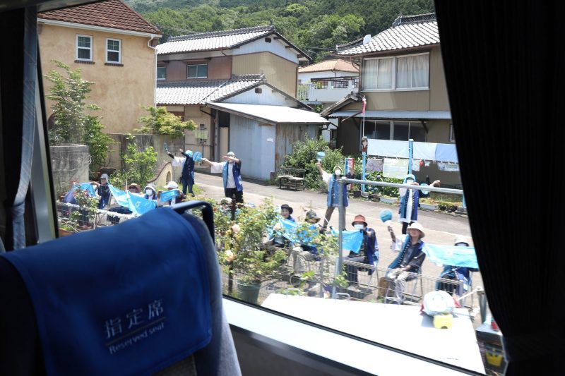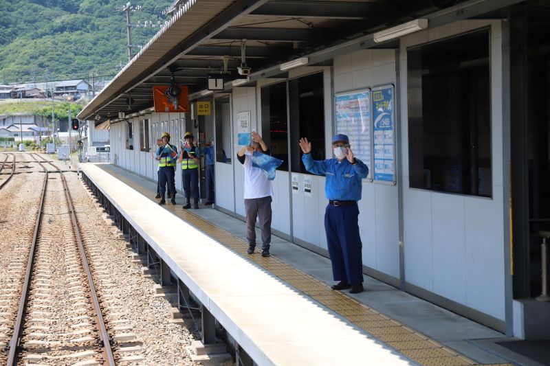 出発時にはJR四国の社員の人たちが手や幟を振って見送ってくれました