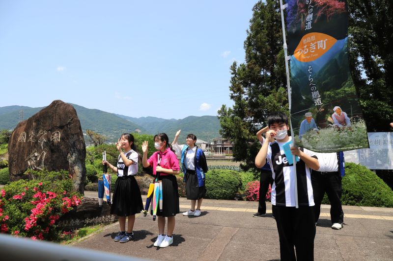 貞光駅では徳島県立つるぎ高校の生徒さんたちが出迎えてくれました