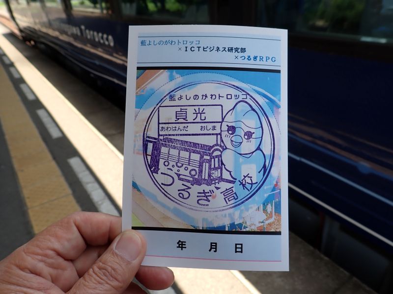 つるぎ高校では地域に根ざしたカリキュラムが組まれ、充実したICT教育環境を生かして地域社会の発展に貢献するスペシャリスト養成を行っているそう。出迎えもその取り組みの一環だそう。記念スタンプもらいました