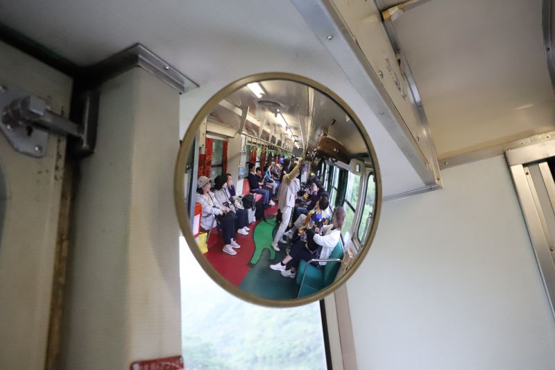 列車内は団体客で混雑。通常はこんなに込み合っていないと地元の利用客の方が話していました