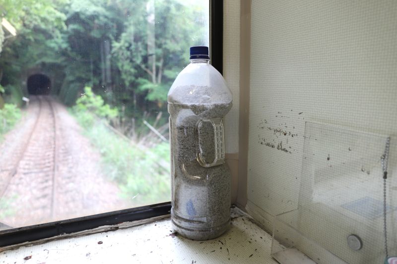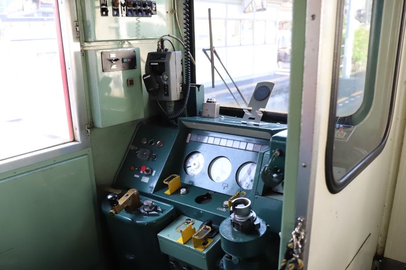運転席脇に滑り止めの砂がありました。雨天時など空転・滑走防止のために運転士自ら撒くそうです