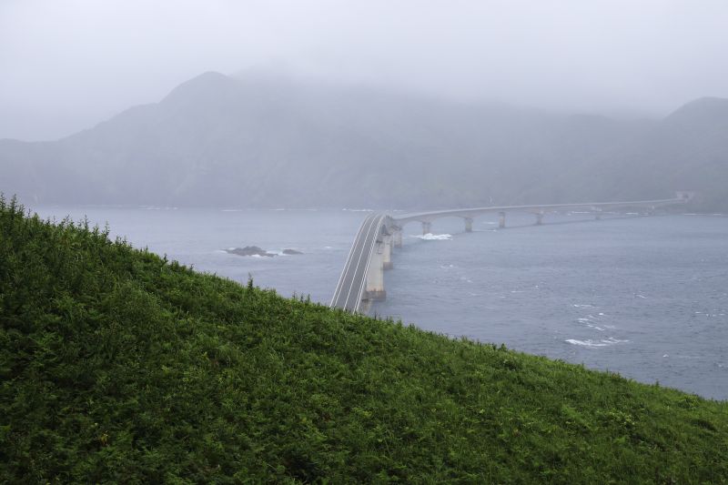 通ってきた海峡に架かる甑大橋を見下ろせます