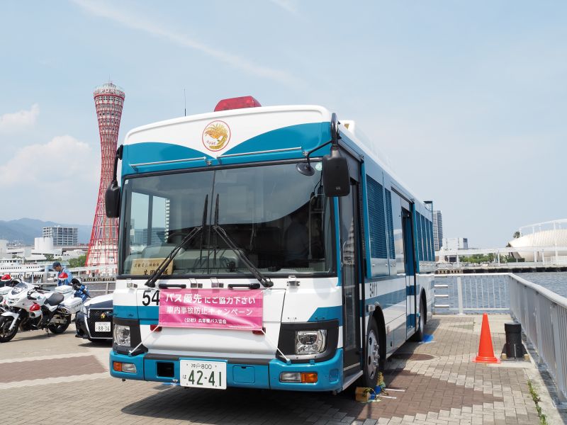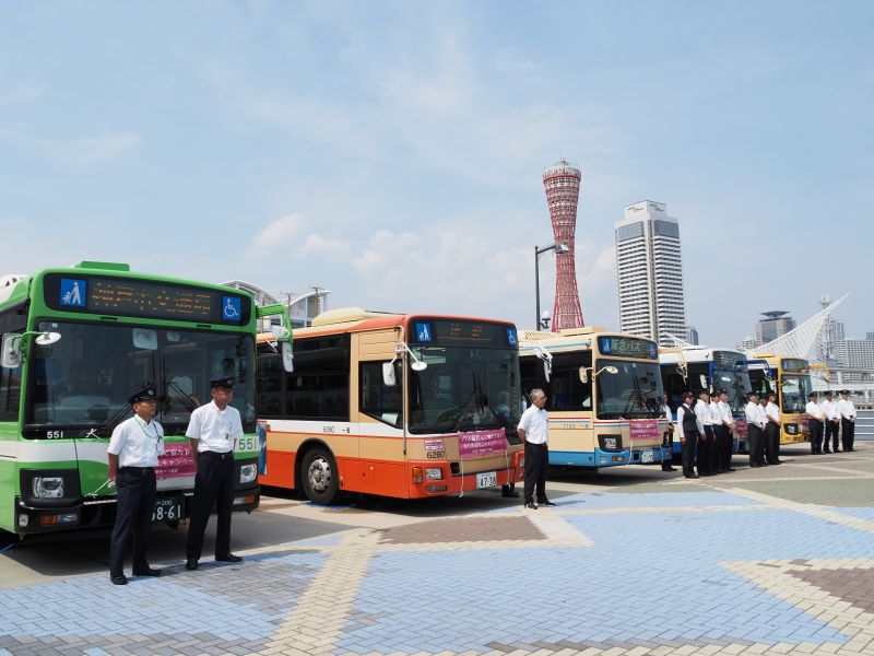 このキャンペーンは兵庫県内のバス会社をはじめ兵庫県や神戸市、兵庫県警、交通安全協会が連携しての試みで全国初の取り組みとのこと
