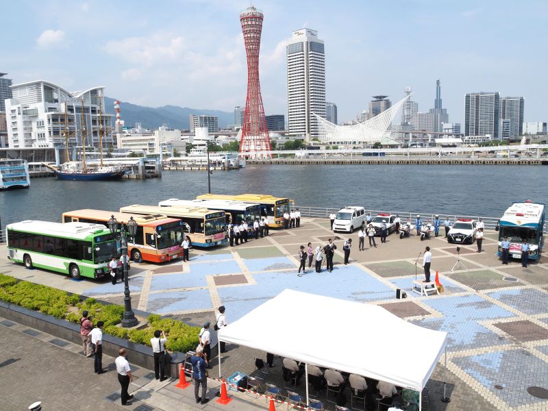 - 「バス車内事故防止キャンペーン」でハーバーランドに神戸市内を走る市バスや民間の路線バスが集結!