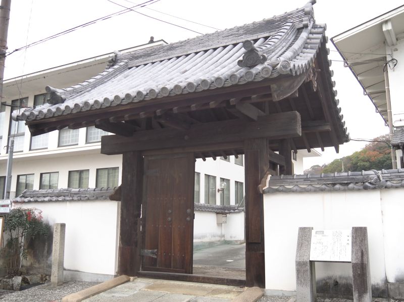 龍野城の隣にある旧脇坂家老門。なんと小学校の校門になっています
