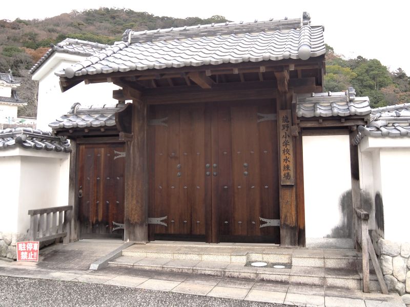家老門の向かいにも門がありました。表札には「龍野小学校水練場」とあります