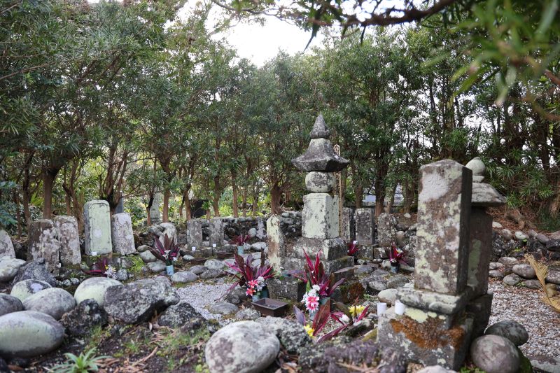 秀家は50年もの長きにわたって島生活を送り83歳で亡くなったということですが、その際流人の墓を建てることは許されず後々になって子孫が五輪塔を建てたとのことです。そしてこんな石が置かれていました。備前宰相といわれた秀家ですが、平成になってから岡山城築城400年を記念してこの礎石が運ばれたそうです。粋な計らいですね