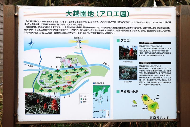 八丈島は島の中心となる三根(みつね)、空港南の大賀郷(おおかごう)、その東側の樫立(かしたて)、さらにその東の中之郷(なかのごう)、末吉(すえよし)の5つのエリアがあります。まずは空港から程近い大賀郷エリア内の観光スポットを訪れました。