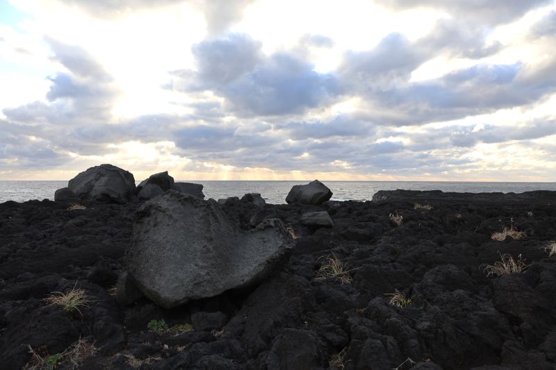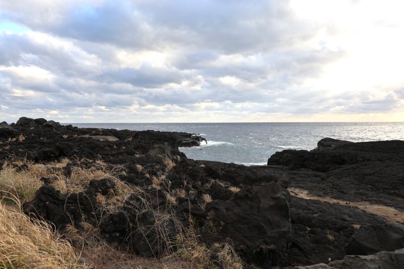 ここは八丈富士が噴火した際に流れ出た溶岩が海に流れ落ちてできた溶岩台地