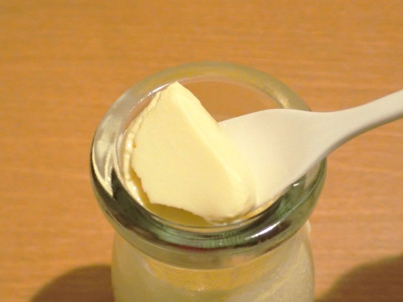 牛乳瓶を小さくしたサイズの可愛いガラス製の容器に入っています(1つ480円)