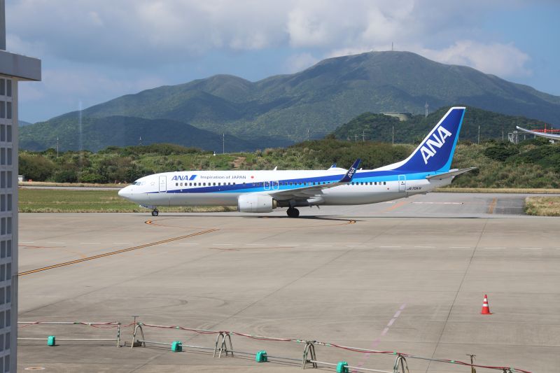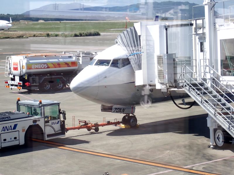 ボーイングB737-800型機。機体番号は右の翼と尾翼の下そして前輪の格納部分に表記されています(機体番号はJA70AN)