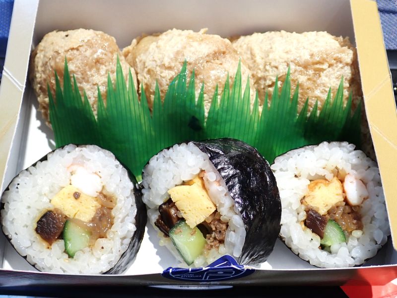 昼は機内でと空港内のお店で助六寿司を購入