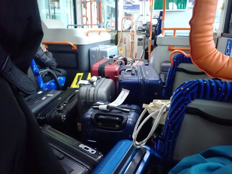 バスの前部に積まれた乗客の手荷物。春節の時期で多くの中国系の人たちが乗っていました