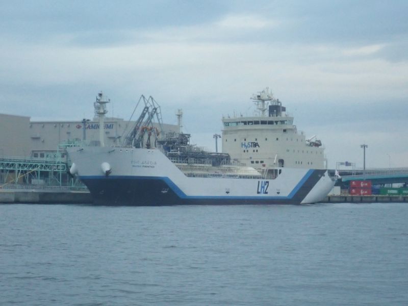 液化水素運搬船「すいそふろんてぃあ」が停泊