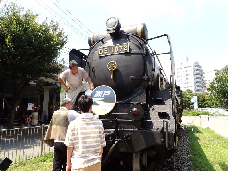 そして神戸駅前のD51の前を通るとヘッドマークの取り付け作業が行われていました