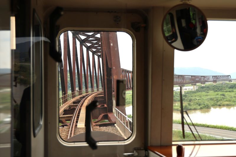旧国鉄の新線計画路線でしたが途中で計画は中止に。そこで関係自治体や企業などが出資し、新線計画を引き継ぐ形で1999年1月11日に開業した第3セクター方式の鉄道です。いわば近年の新しい路線ゆえの高架鉄道で、一段高い車窓からの眺めは解放感があります。