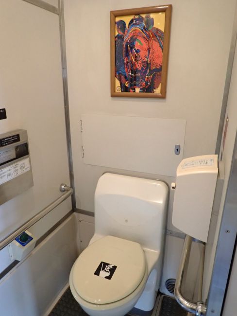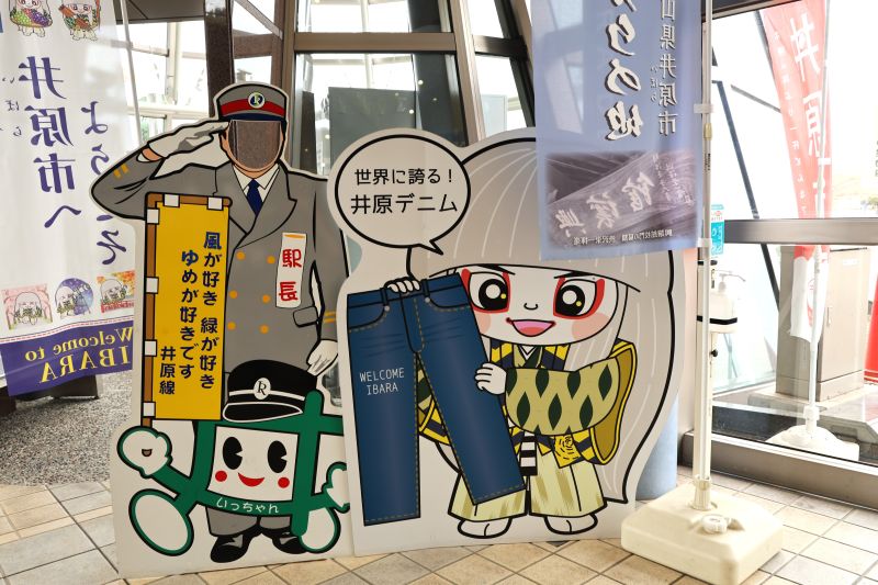 実は井原鉄道には特別車両が4両あり、「アート列車」は車体を金色にし走る美術館というコンセプトだそう。さらにもう一両は黒い車体の「戦国車両」。地域ゆかりの武将「北条早雲」をはじめとした沿線氏族の家紋等をデザインした車両とのこと。今回は出会えませんでした。