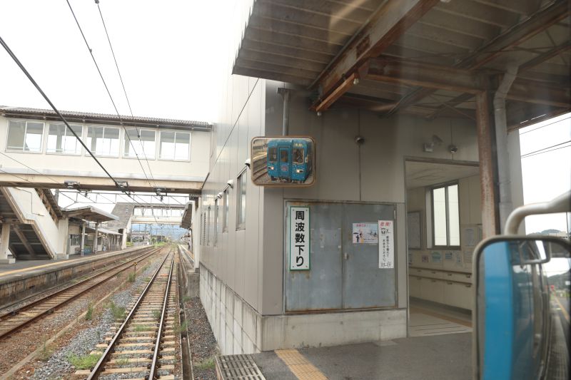 途中いくつかの駅で上下線の車両がすれ違います