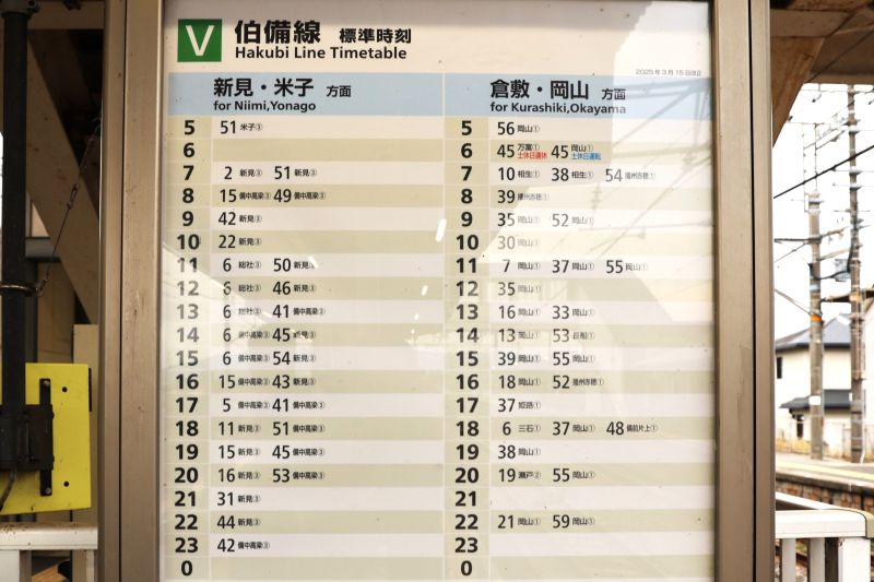 ↓伯備線の時刻表