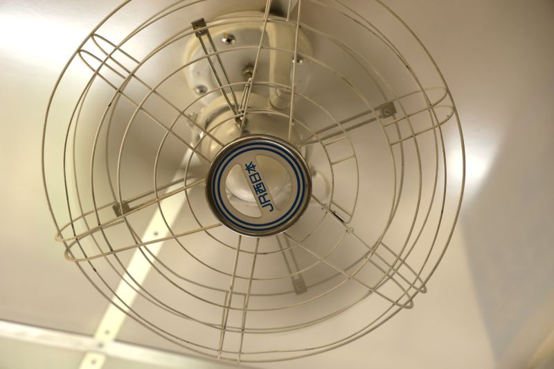 以前は「JNR」と表記されていた扇風機の中心部分ですが、いまは「JR西日本」に!
