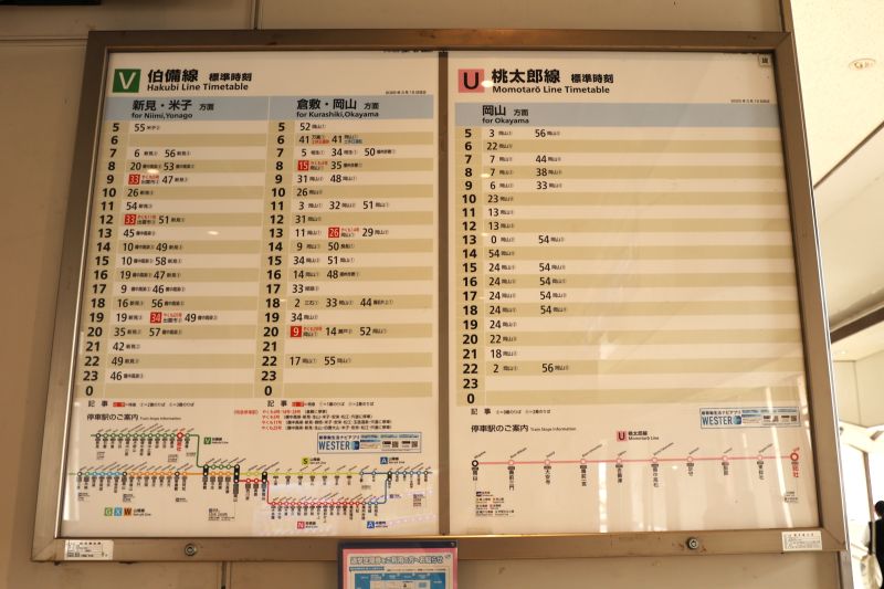 桃太郎線の本数はごくわずか。倉敷を経由する伯備線の方が本数は多いです