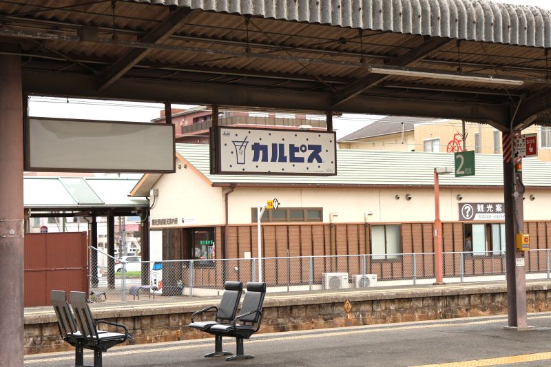JR側のホームに「カルピス」広告看板。あまり見かけないものかと・・・