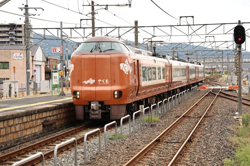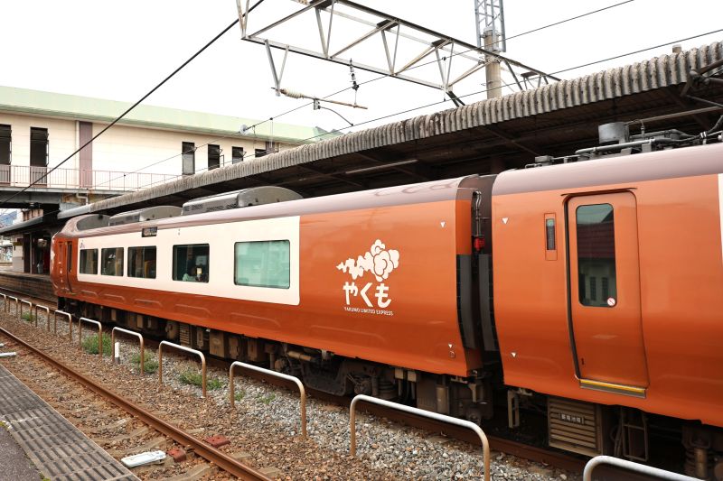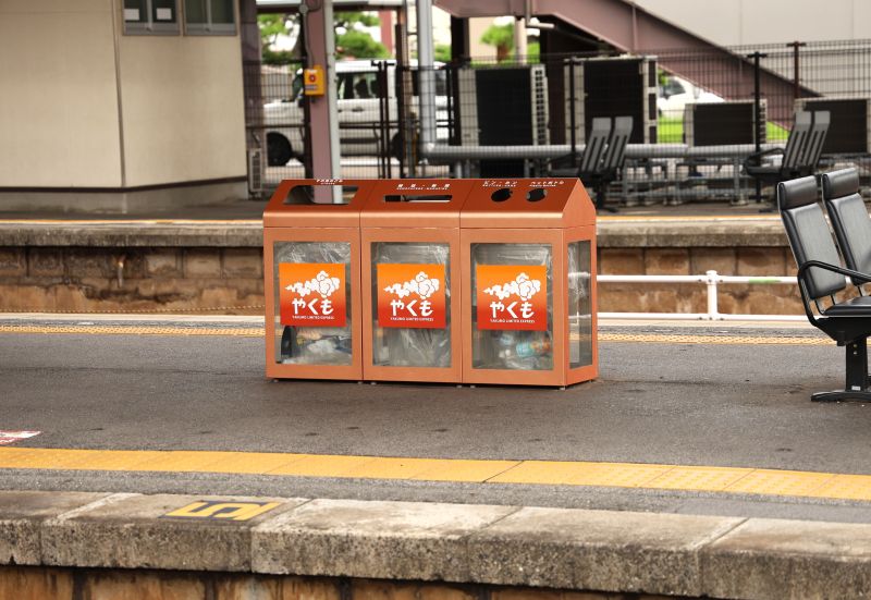 特急「やくも」デザインのゴミ箱。去年の島根県飯南町バスツアーで「新型やくも」に乗りましたが、新見駅にもありましたね