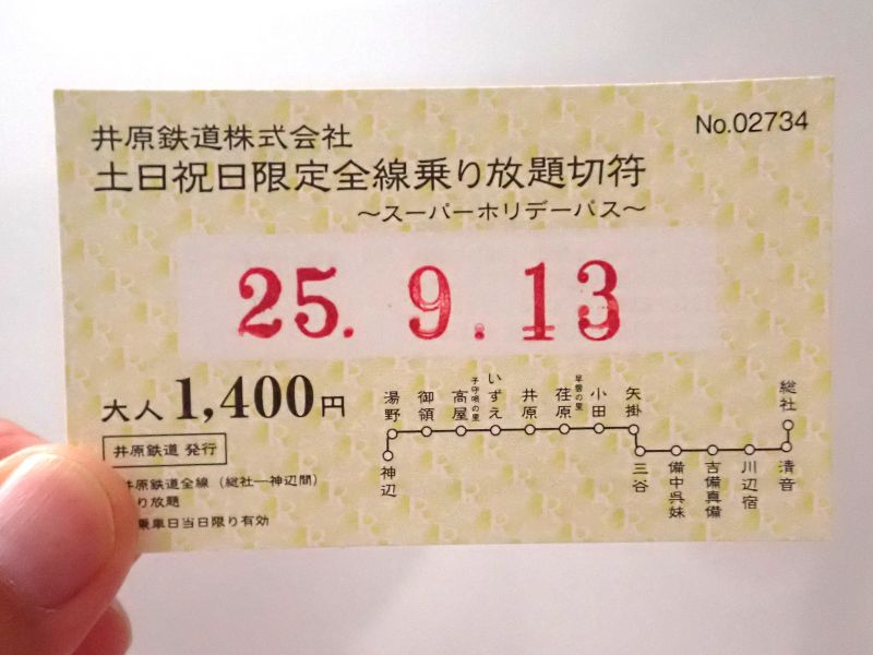 乗車券は車内で買える「土日祝日限定全線乗り放題切符」を利用