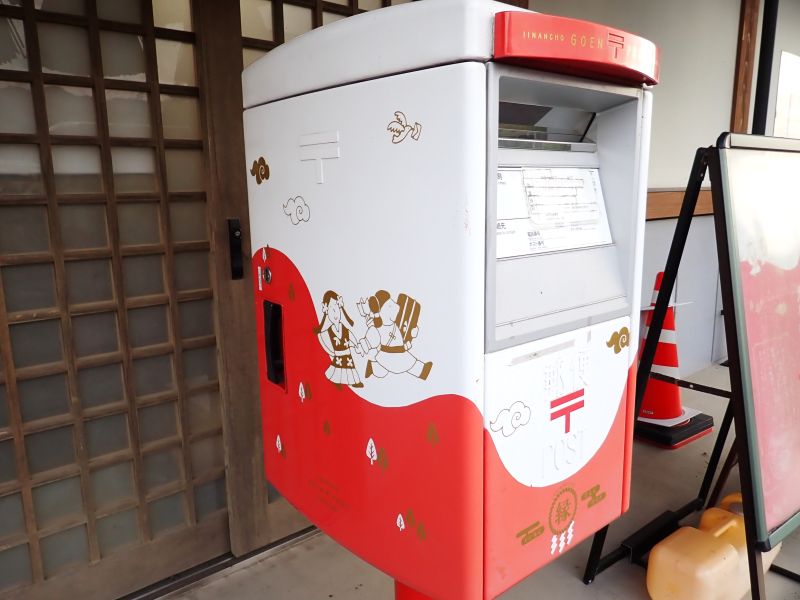 そしてしめなわ館の北側にはこんな紅白のおめでたい郵便ポストがあります