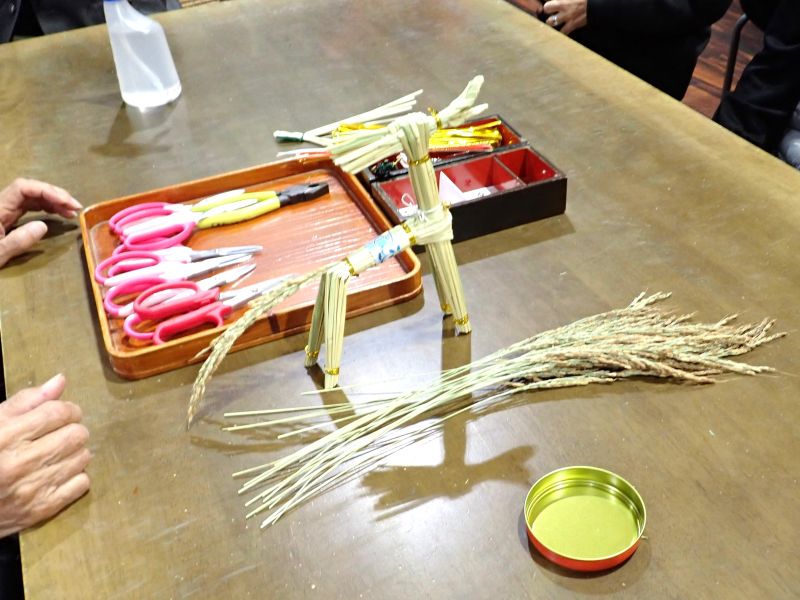これまで「しめ飾り」作り体験をしてきましたが、今回は初めて「とろへい馬」作りに挑戦しました。しめなわ館では今年からスタートした新体験プランだそう。