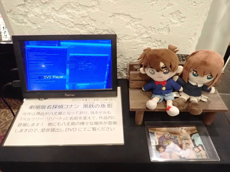 ところでホテルロビーには名探偵コナンの漫画本や人形が置かれていました