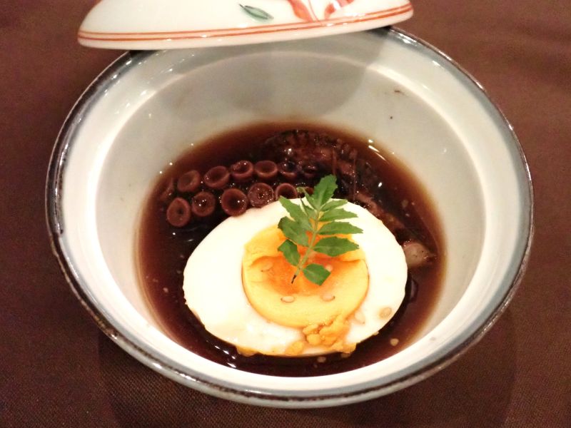 煮物は八丈島蛸の柔らか煮と平飼い卵