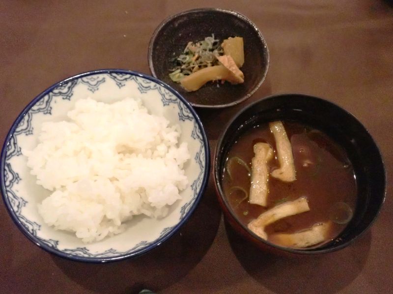 〆はご飯と赤だし、付いてきた香の物は島の人気店「千両」で漬け込んだ5年物の八丈産の島たくあんとちりめんじゃこ