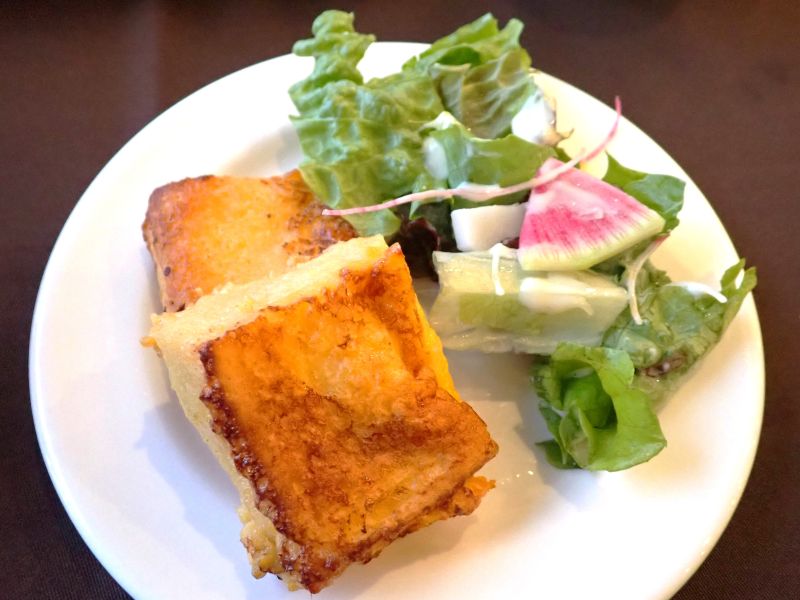 そしてホテル自慢のフレンチトースト。普段朝は米飯ですが、これは食べねばの一品です。サラダにはこれも特製のマヨネーズをかけました!