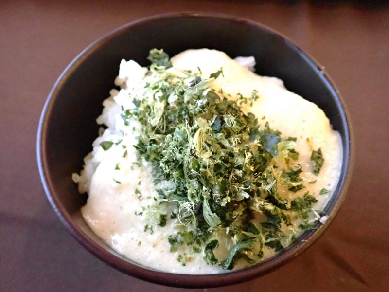 ご飯はとろろに明日葉の削り節をかけて食べました