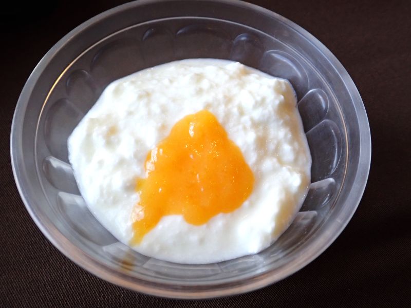 食後は島のジャージー乳を使ったヨーグルトに島レモンを使ったホテル特製フルーツクリーム「レモンカード」をかけて・・・