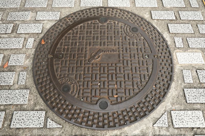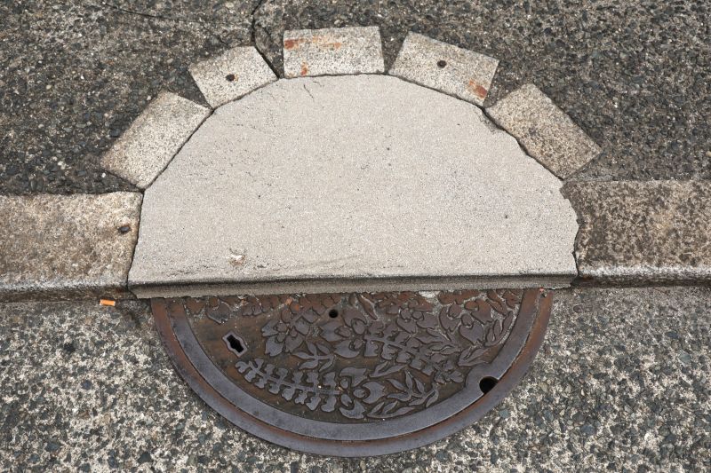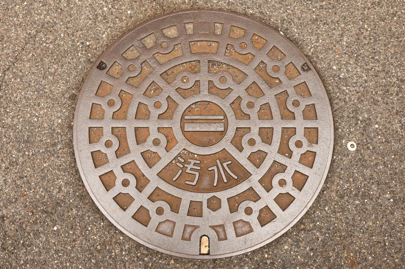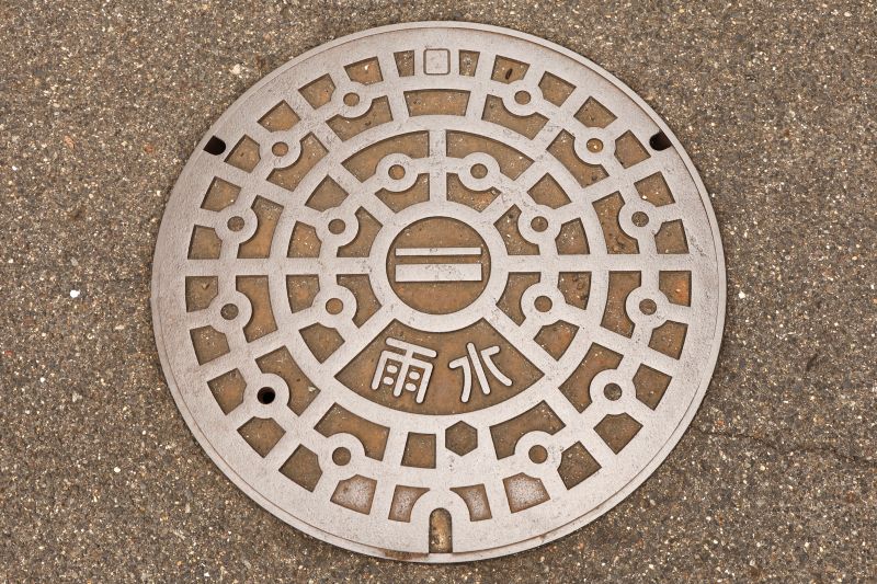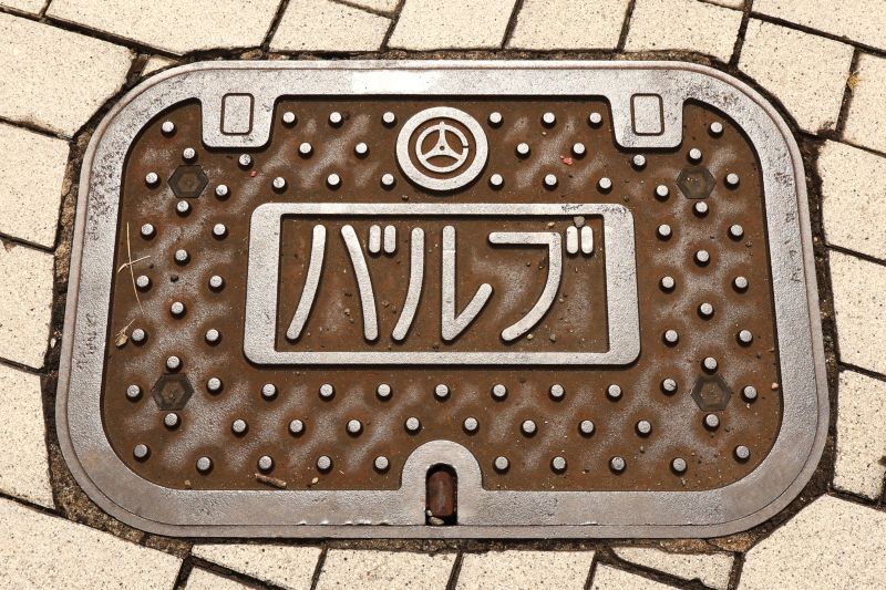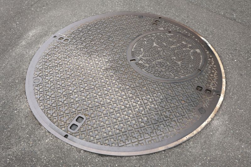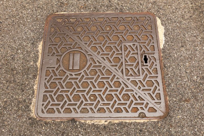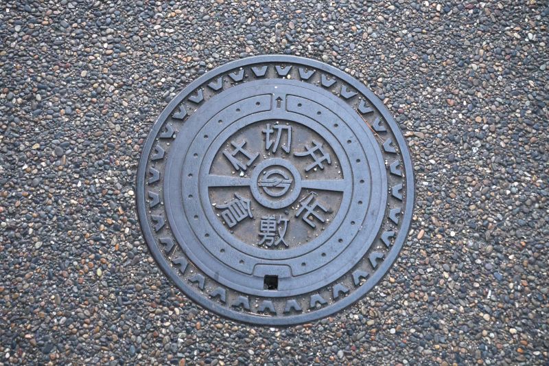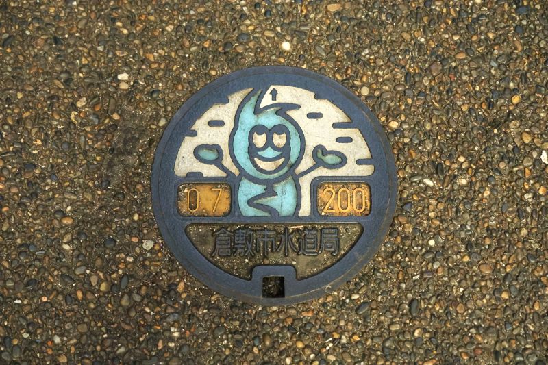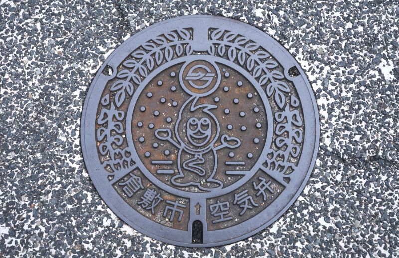 倉敷市水道局のイメージキャラクター「くらっぴぃ」が描かれたハンドホール蓋
