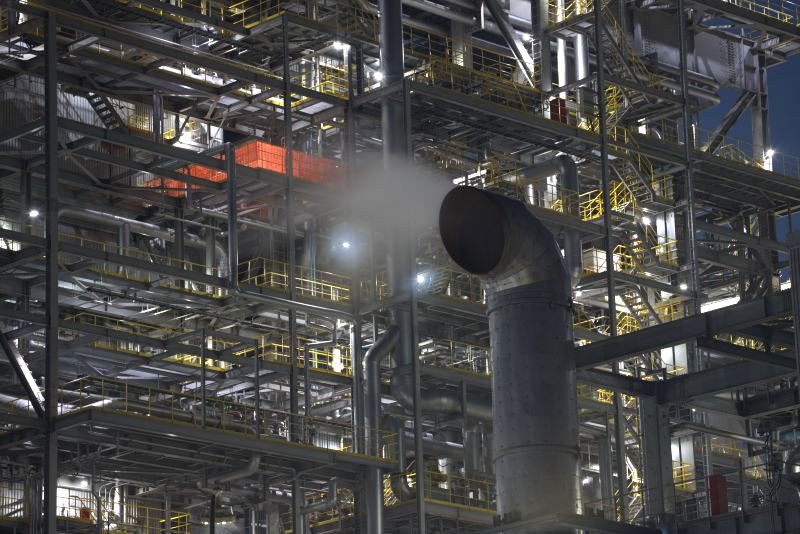 建物の柱や梁に鉄道レールが使われている「百年レールの駅舎」です。