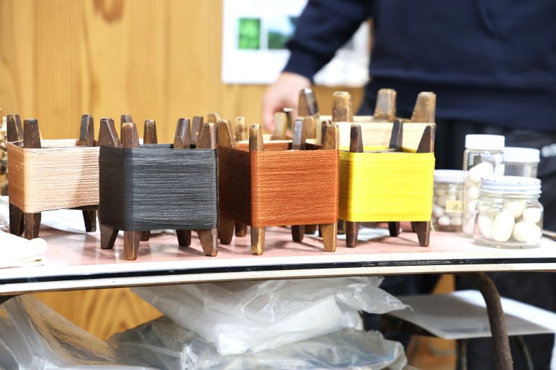 絹糸を草木染めにして手織りされています
