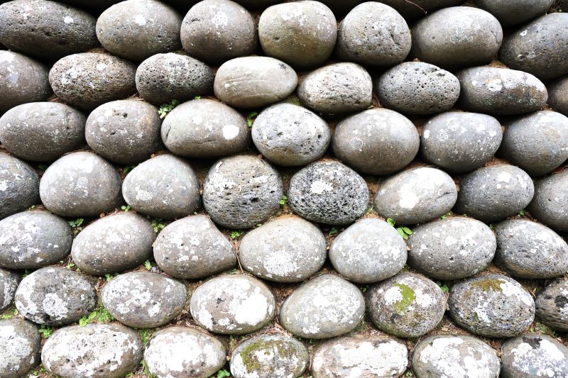 「六方積み」といわれる手法で規則正しく積まれています(ひとつ中心に据えると周囲6個の石で囲まれています)