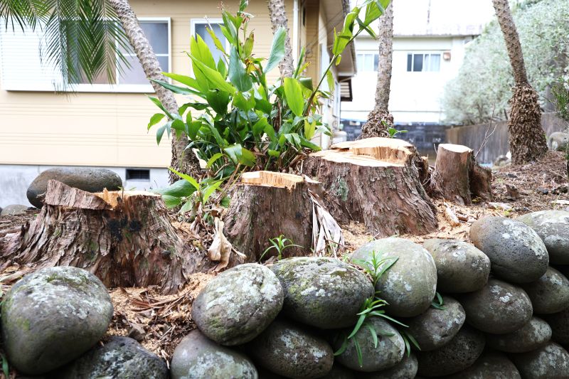 最大瞬間風速が54.7mというとてつもない風で木々が揺さぶられ、その木の根が石を動かしたようです。そのため木々が伐採されていました